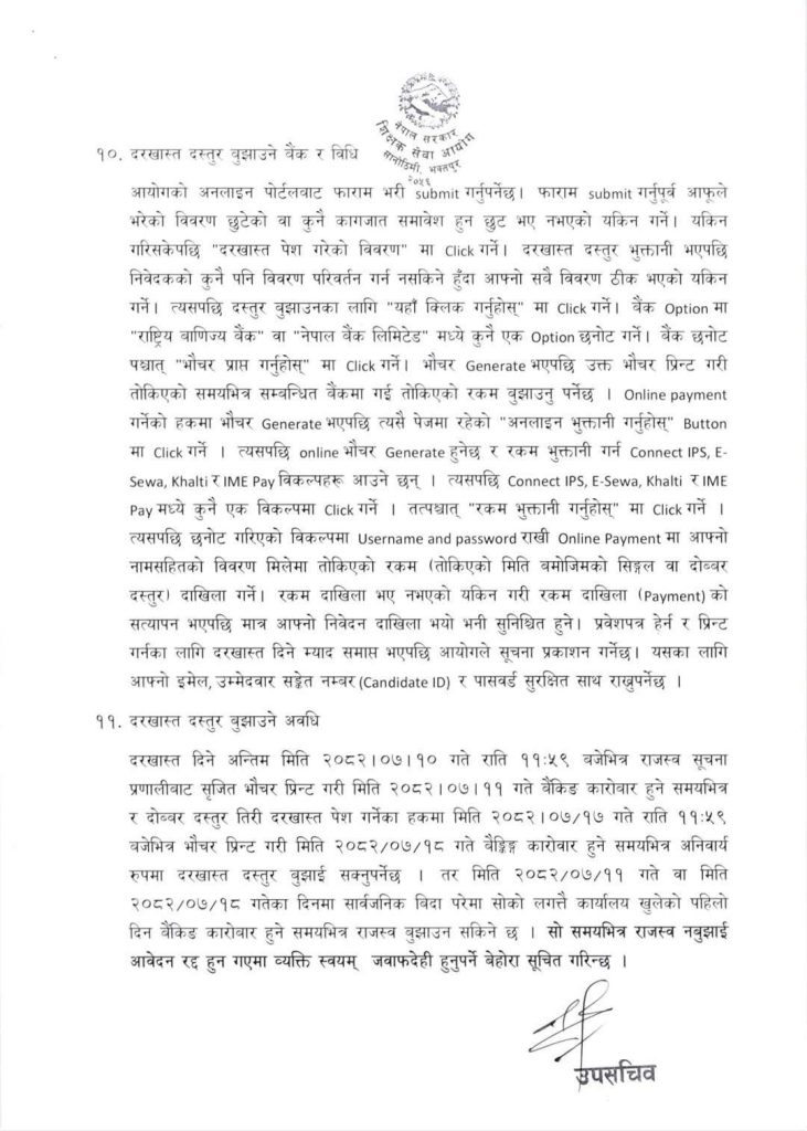 दरखास्त दिने अन्तिम मिति : २०८२ कार्तिक १० गते