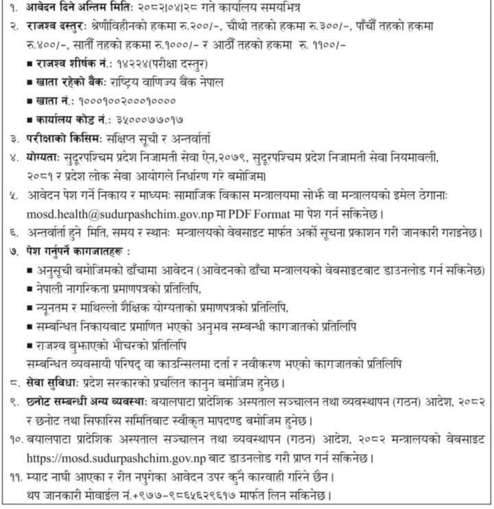 थप जानकारीको लागि तल दिएको सूचना हर्ने तथा सामाजिक विकास मन्त्रालय सुदुरपश्चिमको वेवसाइटमा हेर्न सकिन्छ । वेवसाइट हेर्न यहा क्लिक गर्नेहोस ।